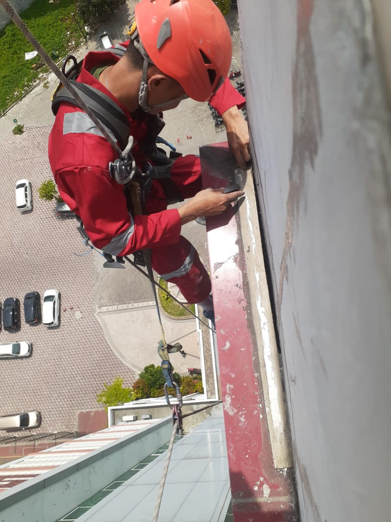 1 . Jasa pembersihan facade gedung kaca, keramik/granit, ACP
